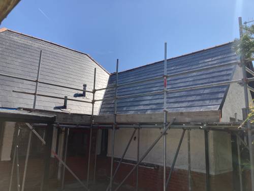 As promised a really great looking roof .in two days and I was kept up to date by Edwin all the way. Everything thing explained of what was happening and the guys cleaned up after themselves. The scaffolding was safely installed and removed, I spoke to the scaffolders about them driving over my flowerbed the compensation was a scaffolding board to repair it that was much appreciated. All in all a fantastic job and replacement gutters that was not expected a great a team and very pleased . Thank you
