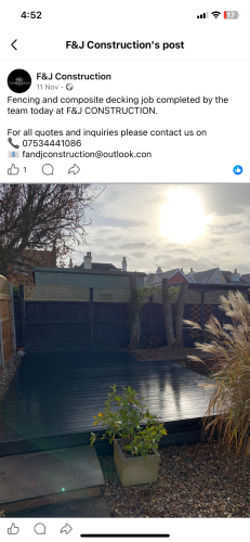 F&J CONSTRUCTION is a family business with over 50 years experience in the building trade. Onboard our team we have fully qualified brick layers ,carpenters, roofers , electricians, plumbers and landscapers . We cover all aspects of building ,no matter how big or small the job we are happy to and quote for any of your building needs .