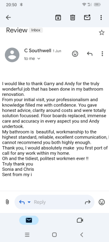 Excellent workmanship and the finished job was perfect. It was a pleasure to have Garry and his son in our house. Couldn't fault anything