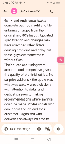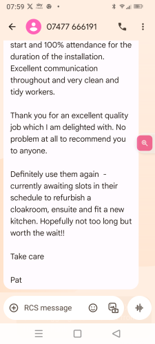Garry has complete the job in the agreed timescale. It’s been done to a high standard. Everything was kept clean and tidy. Cannot recommend enough, fantastic job