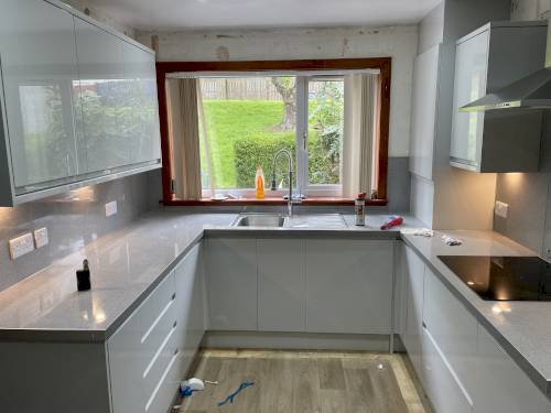 Please stay away from this company, he came and gave what sounded like a decent quote for the work I needed doing. He quoted £750 stating it would take 2 days. He did not arrive on the first 2 days he was supposed to start but came on the 3rd day at 9.20 and left at 13.10. The pillar he fitted between the dishwasher and washing machine fell down, the worktops are not level and the worktops are not sealed. In my original quote I had asked for pelmet to be fitted above and below the units. He advised against fitting the pelmet below the units which I accepted but he still took the full amount for doing less work and in a much shorter time than quoted. I have text him twice now and he has ignored me. I have now had to pay someone else to fix this botched up job. I have also contact trading standards to complain.