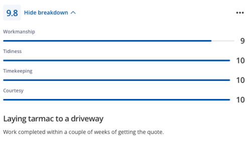 About Our Reviews: The reviews contained on this page have been submitted by users of our service who have had a job completed by a verified trade member. We operate a closed loop feedback system which protects our users from fake reviews. To understand more about our reviews process, please visit our Reviews Policy.