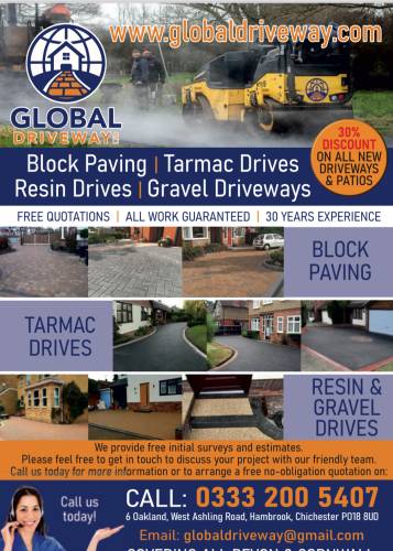 Global driveway LTD we are local trusted family run company we specialise in quality driveways and patios and all types of landscaping and fencing all comes with a 10 year guarantee and we offer a free friendly quotation we cover all Devon and Cornwall