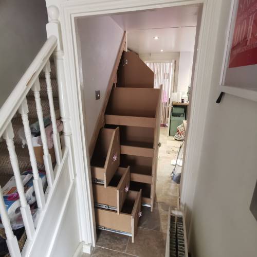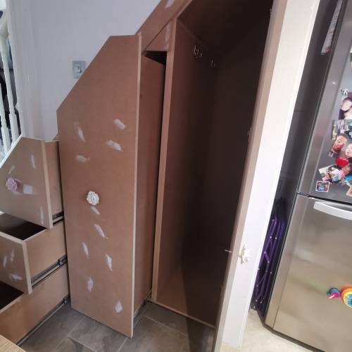 I usually do domestic carpentry (doors, built in wardrobes, under stair storage, stud walls, kitchen....)