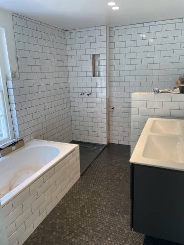 I have 45 years in the tiling and stone business, recently moved to Kingsbridge so I can cover the south hams area, I specialised in high end projects in central London and have many photos of previous projects, I have worked on many projects in Salcombe, Thurlestone etc. Have worked on Welstead building, Jeremy Wright , lilburn and Elliot projects for local builders to name a few, I specialise In Porcelain, mosaic, ceramic, marble , granite, limestone, slate, all stone slab and tile, I have full public liability insurance and take on all work , small and large