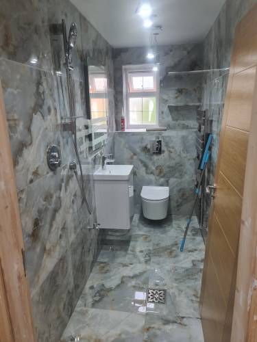 rom fitting large bathrooms, bathtubs, sinks, showers and toilets to wall and floor tiling, radiators and even lighting.