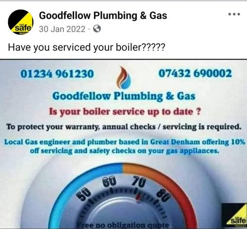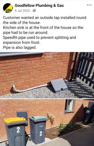 Goodfellow Plumbing and Gas Ltd provides all types of work for domestic and commercial properties from a leaky tap to full installations. We pride our business based on honesty, hard graft and being the reliable one. To see previous work and reviews please visit us https://www.facebook.com/goodfellowplumbingandgas