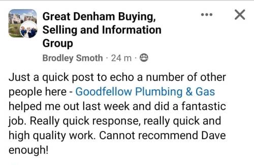 Goodfellow Plumbing and Gas LtdBrilliant service provided by David, friendly and quick to respond to queries and also was able to help with the work we needed quickly and fleixbly. We would highly recommend them