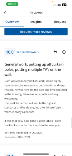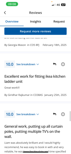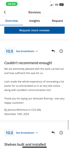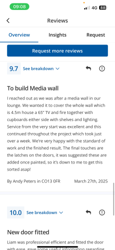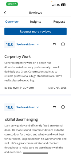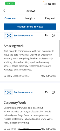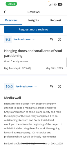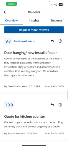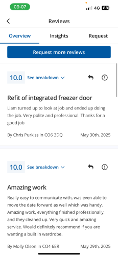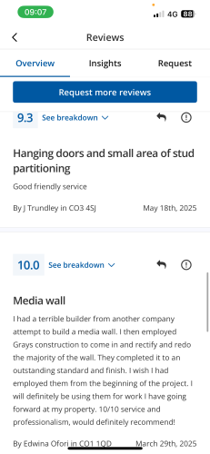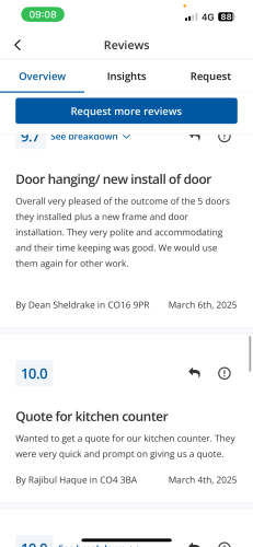 About Our Reviews: The reviews contained on this page have been submitted by users of our service who have had a job completed by a verified trade member. We operate a closed loop feedback system which protects our users from fake reviews. To understand more about our reviews process, please visit our Reviews Policy.