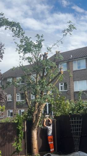 Sean and his team responded in short order to a request to clear a large garden covered in overgrowth. And I mean an impenetrable jungle of grass, weeds, brambles, and bamboo! He completed the job in only 2 days for a reasonable fee agreed at the outset, despite my fear that the job would take longer. He also replaced a missing fence panel and reinforced another section with a concrete spur. The site was cleared and left tidy at the end, and it was well noted that he and his men were friendly and helpful throughout and worked hard to complete the job in the time specified. I would not hesitate to recommend Greatwood Trees & Landscaping in the future, and I already plan to use his services again shortly.