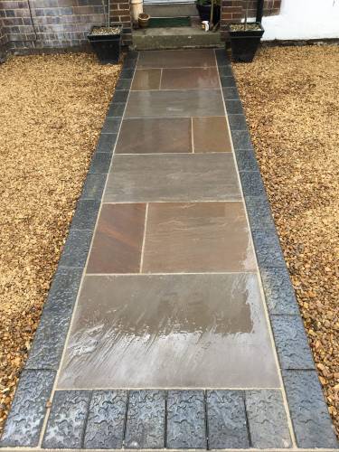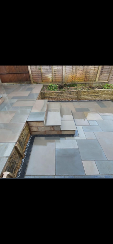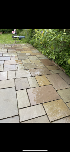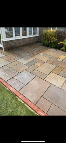 Alex did an excellent job replacing our very old crazy paving patio in Chichester with 35m2 of Indian Sandstone paving. Total transformation with the varying size slabs. On time (allowing for April rain). All refuse removed.