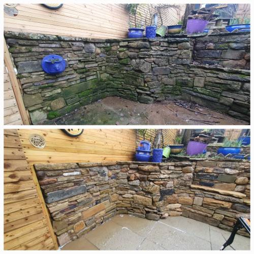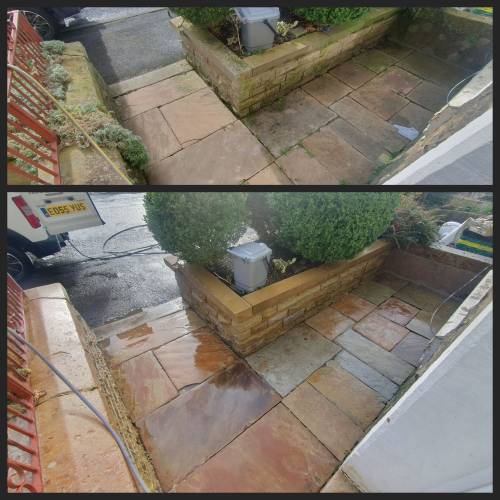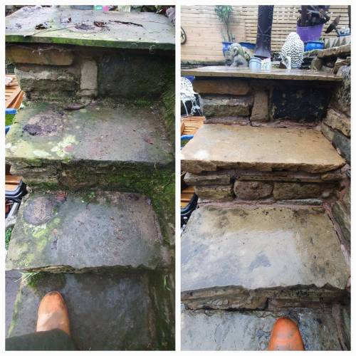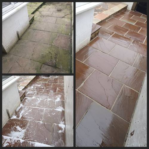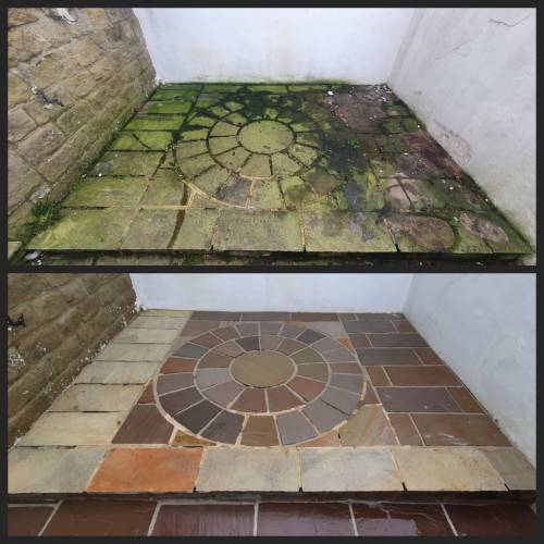 From block paving covered in moss, to Indian stone that has darkened with algae, to stained render and rust-marked stone — we bring tired surfaces back to life.
