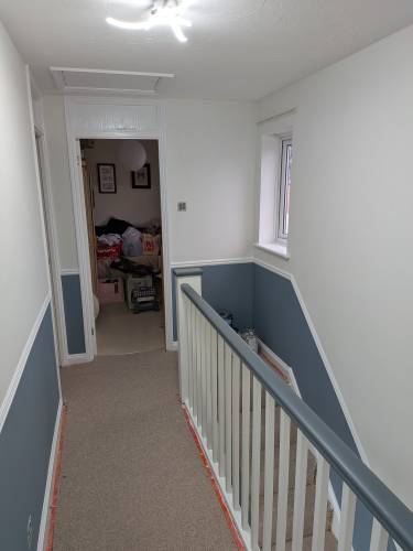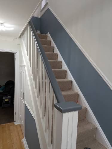 We decided to engage G.W Decorators for our Hall / Stairs / Landing redecoration job after meeting Glen during the quotation stage. This proved to be a good choice as the finished job fully meets our expectations. Glen was tidy around our house, cleared up properly at the end of each shift and was open to some changes as the job progressed. All in all a very satisfactory project and we have retained Glen's number for some planned future works around the property. We are happy to recommend G.W Decorators to others looking for a reliable contractor. David & Anne