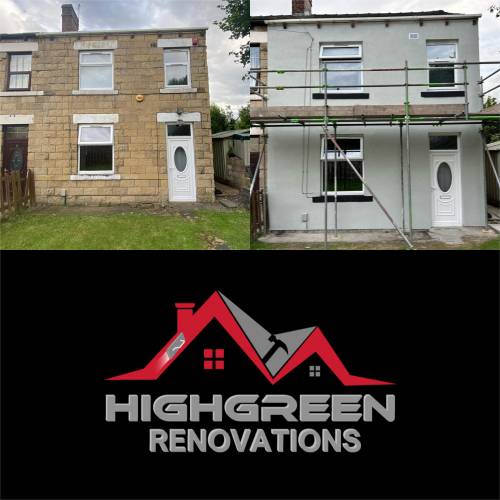 Here at High Green Renovations, we specialise in all renovation work Our main specialties and loves are the wet trades; Damp Proofing, Pointing, Plastering and Rendering of Internal and External wall insulation and property treatment. We also have expertise in Kitchens and Bathrooms, Sandblasting.