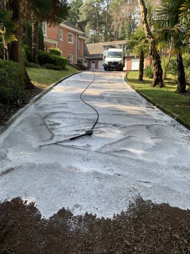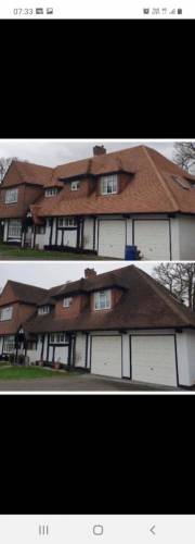 Pressure washing of roofs , walls and driveways .