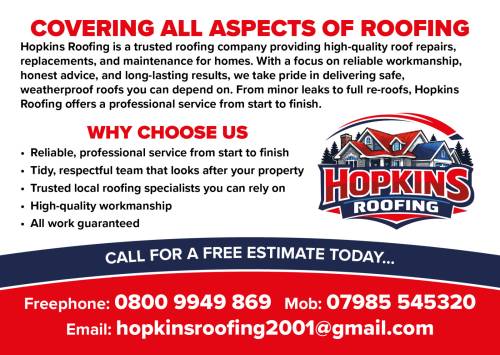 At Hopkins Roofing, we are a company you can trust to turn up on time, keep you informed throughout the work, and leave your property clean and tidy once the job is complete
