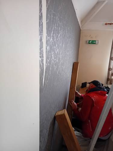 Claims to use pva glue but all paper has started to peel weeks after. Not happy with the job destroyed my carpet when confronted no response. After seeing the reviews on on here I am very disappointed. They claim to do electric work but kept messing with the live feed wire ended up paying an electrician to come out to put in the light.