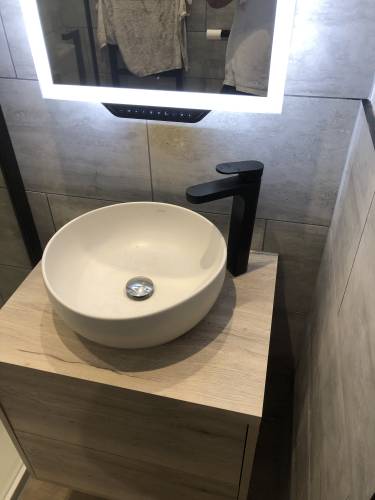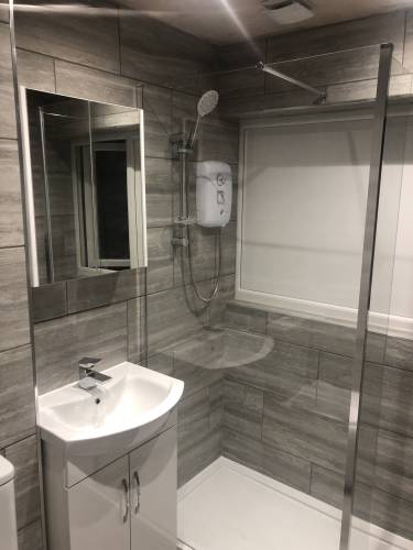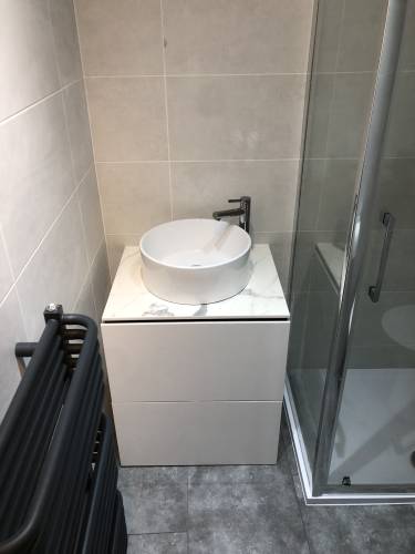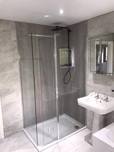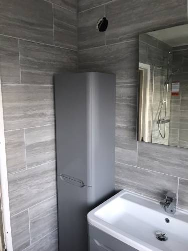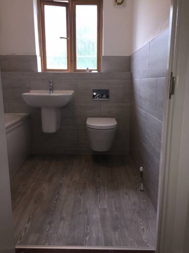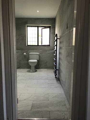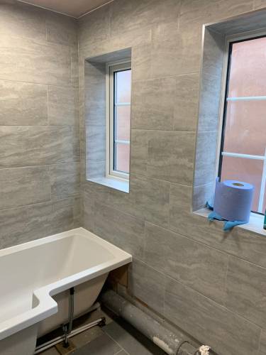 Bathroom installation, wall and floor tiling and plumbing.