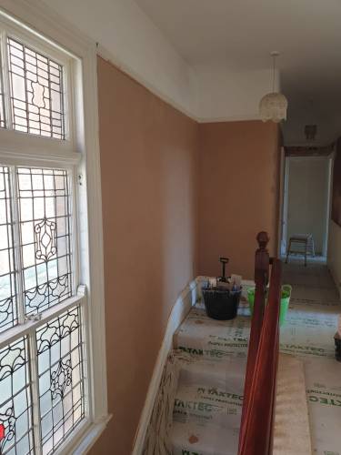 Jamie Barnsley came to our house just before Xmas. Our stairwell wall had cracked and was crumbling away. He removed all the old plaster, re boarded and skimmed it. He did an excellent job, cleaned up all his mess and left everything clean and tidy. He also came back a week later and rendered our front wall under the windows. We were extremely pleased with his work. He is an exceptional plasterer and we wouldn’t hesitate to contact him again if we need and further work carrying out.