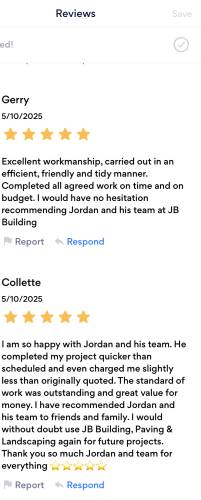 JB building, paving & landscapingAbout Our Reviews: The reviews contained on this page have been submitted by users of our service who have had a job completed by a verified trade member. We operate a closed loop feedback system which protects our users from fake reviews. To understand more about our reviews process, please visit our Reviews Policy.