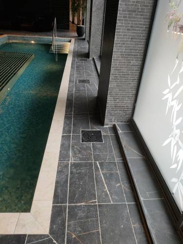 I personally carried out the tiling work in the spa and pool areas of the 5-star Ebrington Hotel in Derry, delivering high-quality, durable finishes suited to a luxury setting.