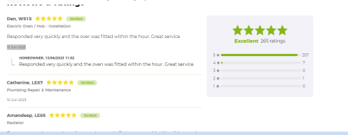About Our Reviews: The reviews contained on this page have been submitted by users of our service who have had a job completed by a verified trade member. We operate a closed loop feedback system which protects our users from fake reviews. To understand more about our reviews process, please visit our Reviews Policy.