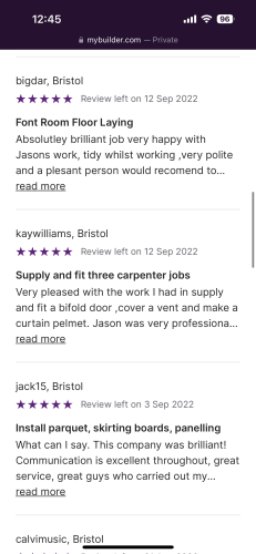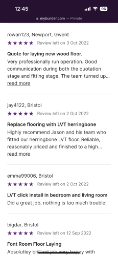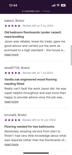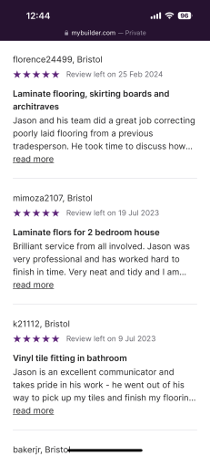 Jason did a fabulous job, amazing attention to detail and went above and beyond for us. Can't recommend highly enough. Will get him to do the downstairs as well in the future! Thank you for our beautiful new floors.
