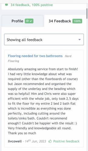 Jason did a fantastic job of the floor and went above and beyond, on the day, I decided to change a couple of things, I decided I wanted undercut door frames for a better flow through finish and also wanted a recessed coconut door mat. He took all of this in his stride and did an absolutely fantastic job. Thanks Jason, top man, will definitely use again!