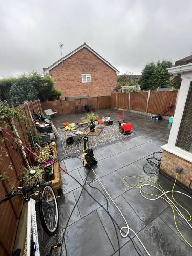 Job itself was ok, Ash worked hard to get the ground level, stones down and whacked, and bed of mortar on top. Ash then laid the slabs on a further bed of mortar and levelled them up. Slightly disappointed with the fact that they left stones strewn outside neighbours house were they unloaded the truck. And, despite a request for them to come back to tidy up, and a reply from John to say he'd let the lads know, my neighbour had to tidy the mess up himself.