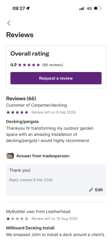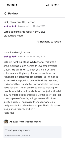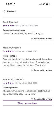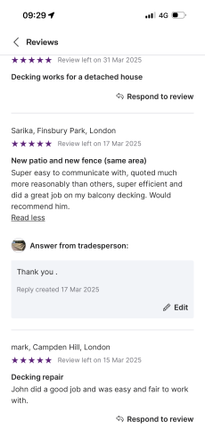About Our Reviews: The reviews contained on this page have been submitted by users of our service who have had a job completed by a verified trade member. We operate a closed loop feedback system which protects our users from fake reviews. To understand more about our reviews process, please visit our Reviews Policy.