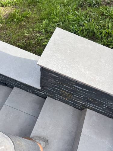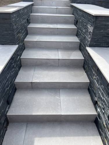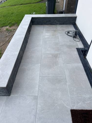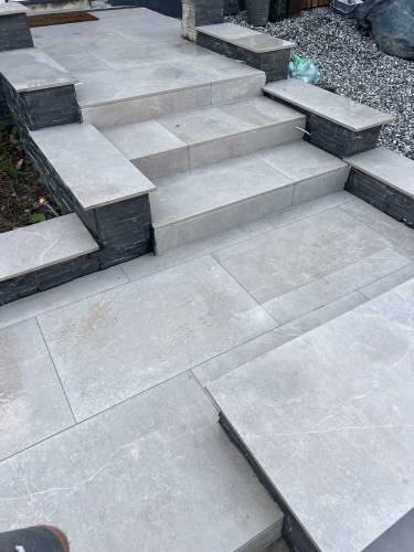 Porcelain and stone patio areas