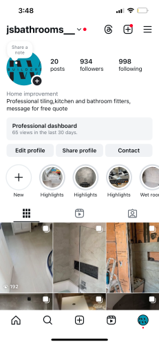 We specialise in bathrooms and kitchens, we can supply and fit both, are work is top quality, we are new to my job quote but have many followers on our instagram