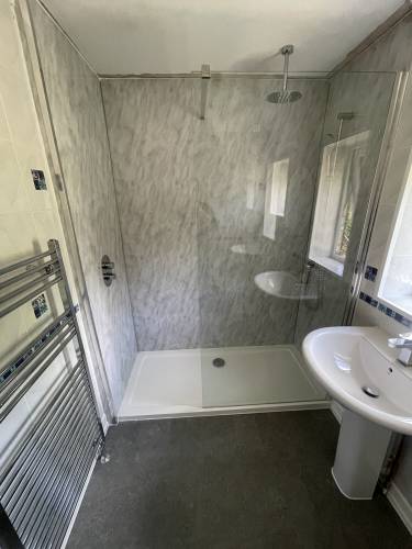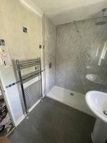 From getting the quote until completion Jack has conducted himself and his company so professionally. We had our bath taken out and a walk in shower fitted with wall panels, shower tray and glass surround and are so so happy with the results. Jack identified a few underlying problems within the bathroom once the bath had been removed ie, damp walls needing boarding and damp joists and floorboards needing replacing and was completely transparent with what needed doing. My husband who has had a few years building work experience was in agreement with Jack when he pointed these issues out so he knew that he wasn’t pulling a fast one to make extra money, and he agreed for them to be replaced. Jack completed today with his coworker Luke and again we are delighted with the results. Our bathroom was absolutely spotless when they left and they offered to take all the rubbish away including bath but we were ordering a skip anyway for more work so we said to leave it. Couldn’t recommend this company enough!!! Thanks Jack and Luke 😀