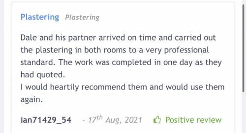 About Our Reviews: The reviews contained on this page have been submitted by users of our service who have had a job completed by a verified trade member. We operate a closed loop feedback system which protects our users from fake reviews. To understand more about our reviews process, please visit our Reviews Policy.