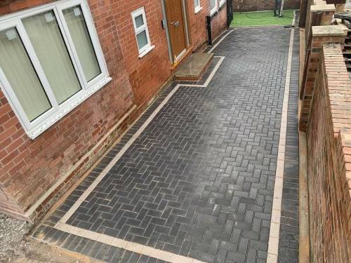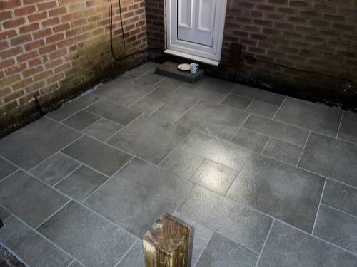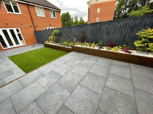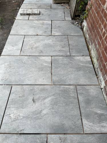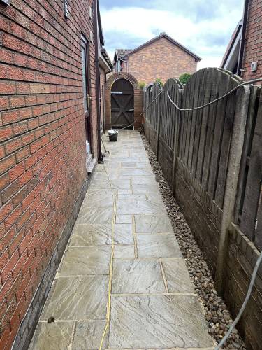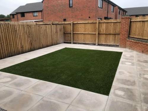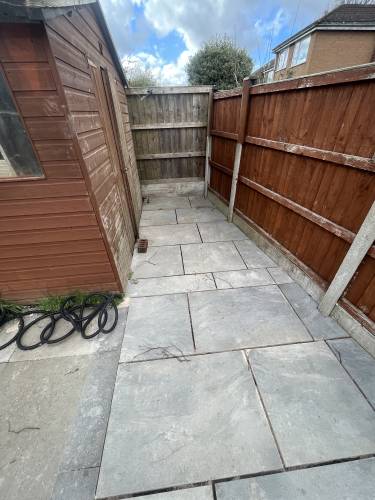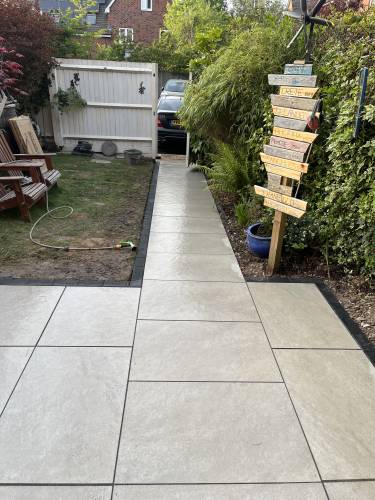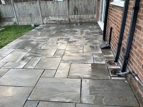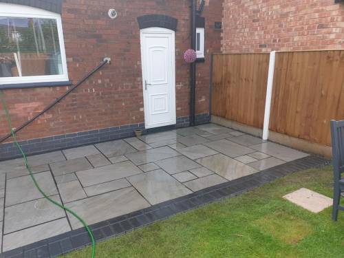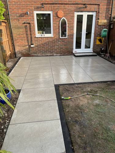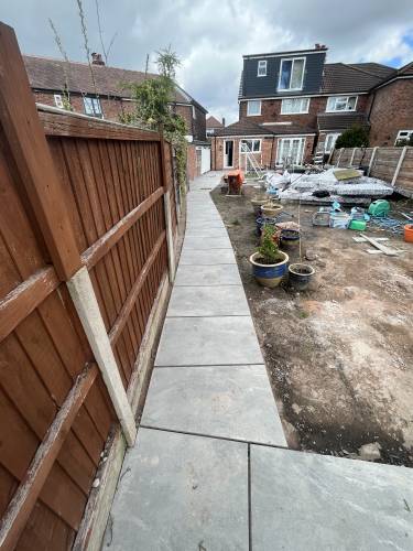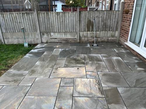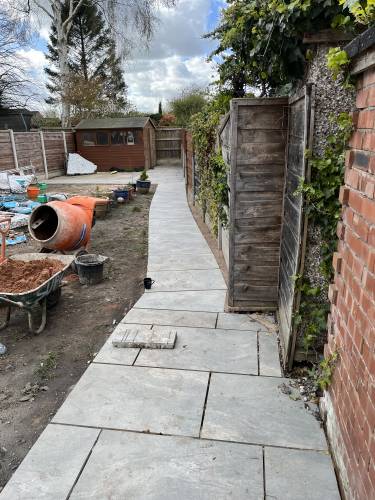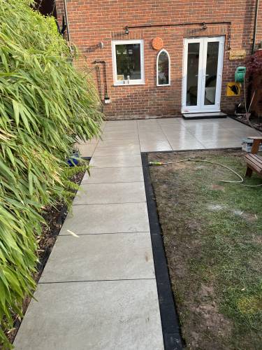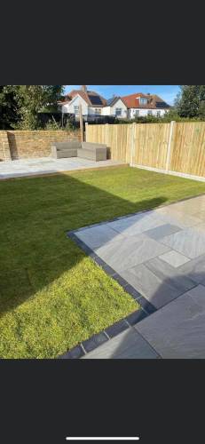 Unfinished, lose flags, turf is dead. Whole garden uneven as nothing was levelled, will have to rectify the work again using someone else. Had to pay over £200 to have rubbish/ over bought materials removed and my drive has been left covered in dried cement that will not come off. So it looks a complete mess.