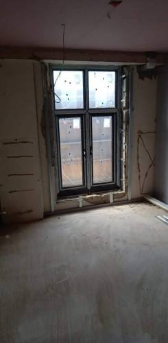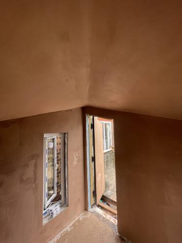 He came very quickly (next day) and early which was great, very polite but the plastering wasn't great. The edge isn't as neat as it could be and there is a faint dent down the centre where he choose to put the joint between the new plasterboard and old ceiling (i was expecting him to replace the full ceiling).