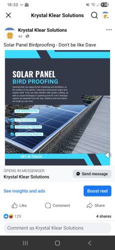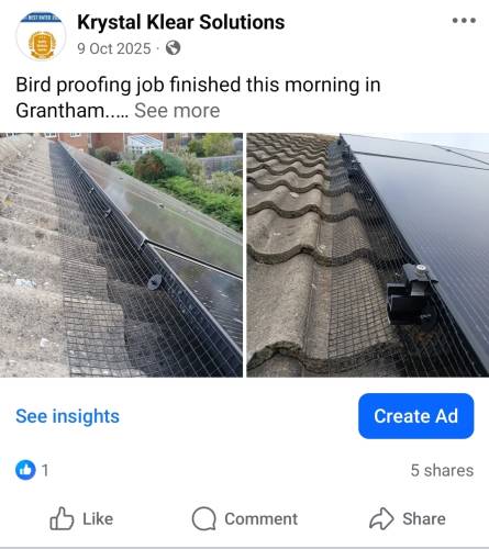 You can check me out on there for reassurance, fully insured as standard. Offering exterior maintenance services from roofline issues, exterior cleaning, birdproofing solar panels.