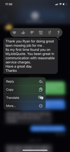 Ryan was kind friendly and helpful. Very professional and would highly recommend him for your gardening jobs.