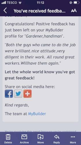 Wonderful service from LEL Gardening. I contacted Daniel for a garden clearance; the job was completed to a high standard, reasonably priced and completed at short notice. Would highly recommend, Thanks again.