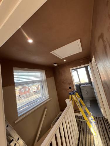 With over 6 years of hands-on experience in the plastering trade, I provide high-quality workmanship across all aspects of plastering throughout the North West. From full house re-skims and new build plasterboarding to patch repairs, media walls, ceilings, and decorative finishes, I take pride in delivering smooth, flawless results every time.