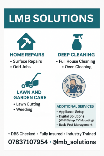 Whether you need your garden cleared, a door handle tightened, or help drafting a digital policy document, LMB Solutions is here to keep life simple, tidy, and running smoothly.