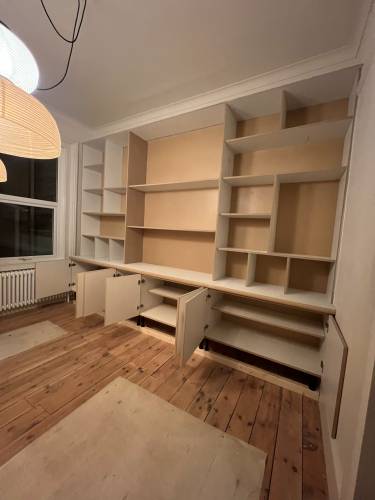 Contact me for a broad range of jobs: bespoke shelving/storage, hanging/repairing doors, skirting/architrave, flooring, window frame damage and more.