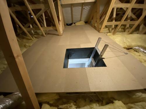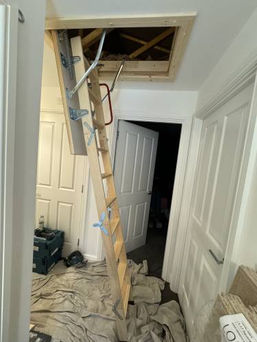 Raised loft boarding, Hatches, Ladder, Insulation, Removals of old belongings, Truss Shelving, Garage boarding