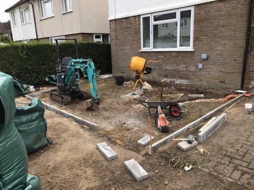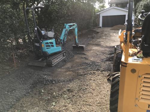 • Driveways & Patios: Expert dig-outs and sub-base preparation for long-lasting finishes.