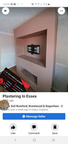 I am a qualified plasterer with many happy customers plastering in Essex, London and Kent