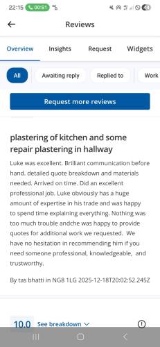 Luke was absolutely brilliant, amazing job completed. Really professional in every aspect, highly recommended for all plastering needs