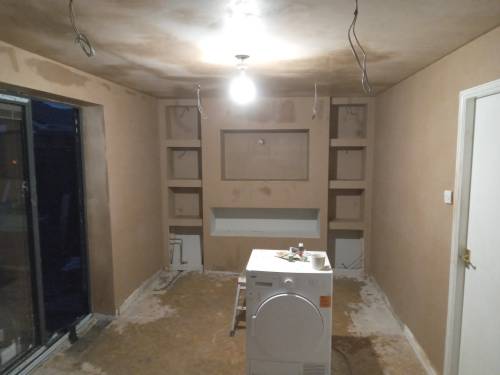 We Plaster small rooms to bigger properties aswell, covering flooring, media walls & kitchens.