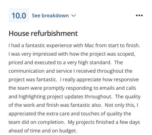 Reviews can only be left by customers who posted a job on MyJobQuote and were contacted by this tradesperson.