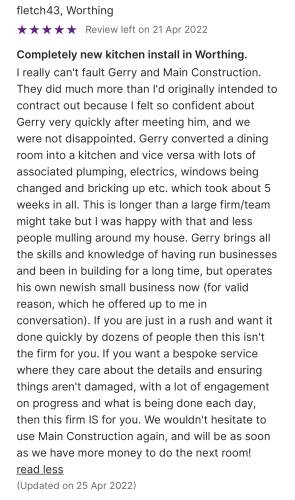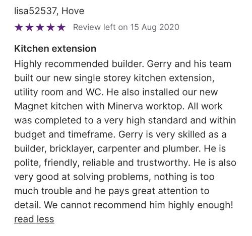 All reviews are submitted by homeowners who have had work completed as part of using our service. Whilst every effort is made to verify and check reviews, we ask all homeowners to conduct their own research and follow our Homeowner Checklist before hiring.