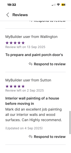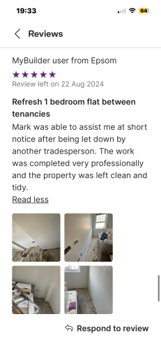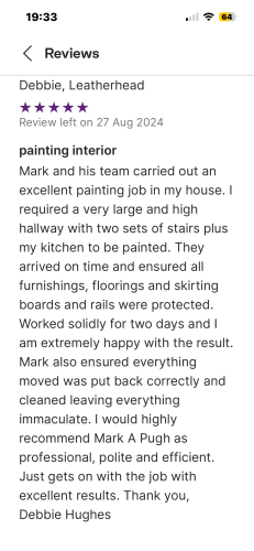 I have been painting and decorating/building for 45+ years and have a small team that works alongside me. I am very reliable and have my public liability/insurance details. Once on site have a quick turnaround in completing the job to my clients satisfaction. I work clean and tidy at all times.